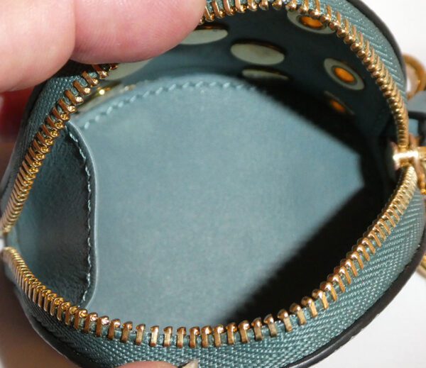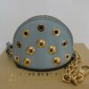 It is made from celadon blue calf grain leather with gold coloured hardware