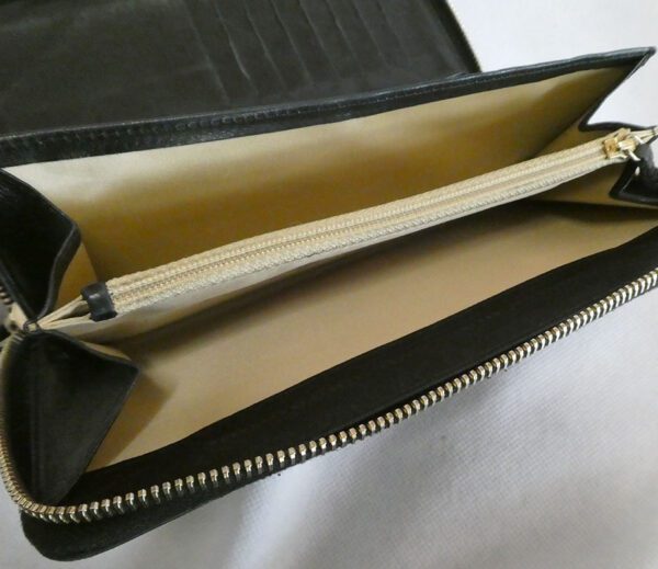 Sixteen card slots, two slip pockets, zipped pocket with section each side