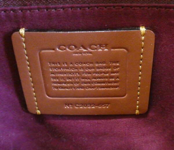 Coach leather label inside bag with model/serial number