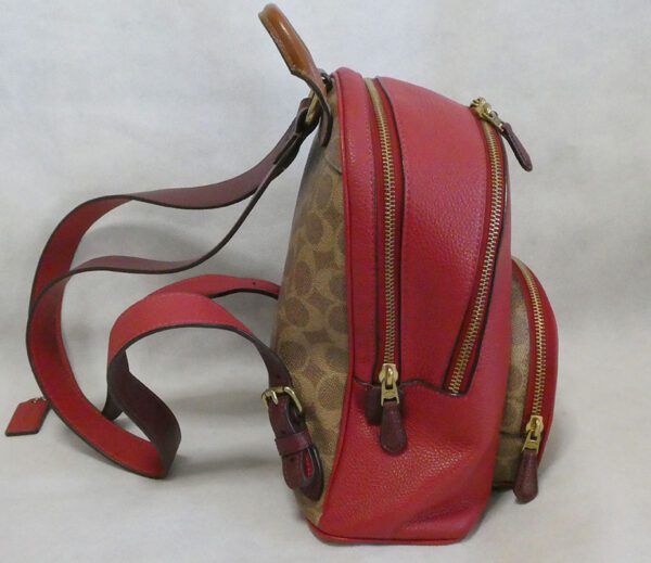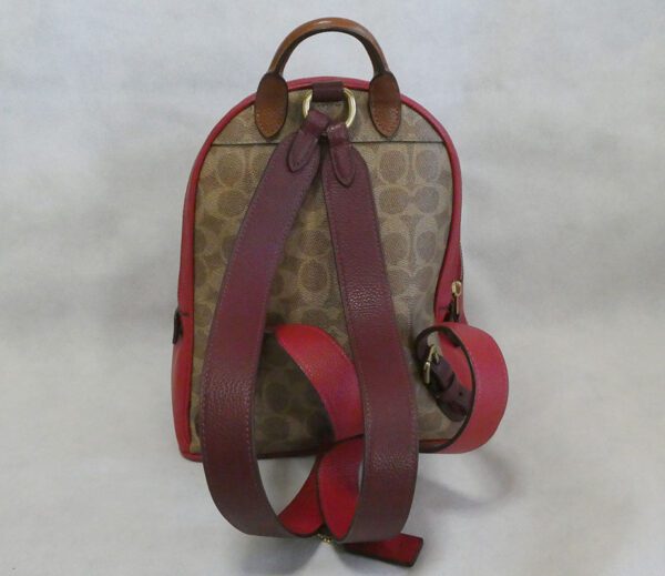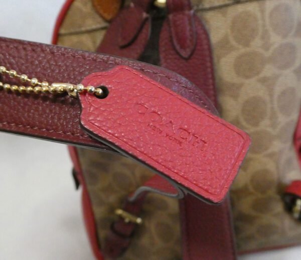 One rear strap has an O ring with detachable leather Coach charm