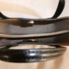 Size – approx 22cm wide at base increasing to 26cm at opening x 19.5cm high x 10cm max deep plus handles and strap