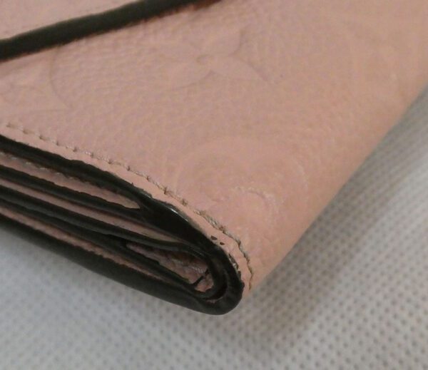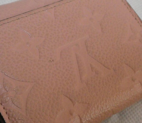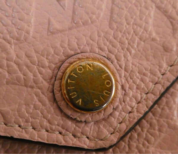 It is made from rose poudre (light pink) monogram empreinte grained calf leather with gold coloured hardware