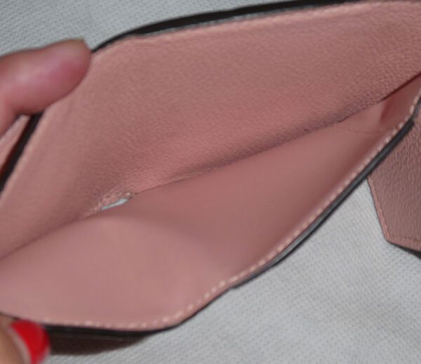 Inside has matching rose poudre cowhide leather lining