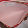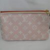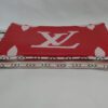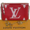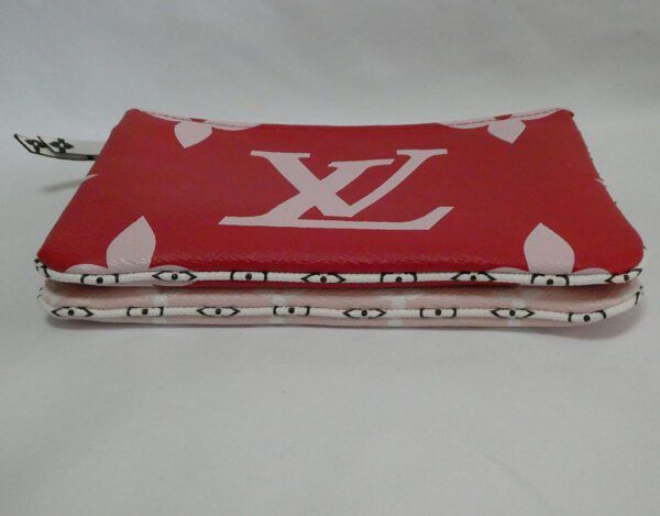 It is made from giant rouge red and rose pink monogram coated canvas with black and white monogram trim and gold coloured hardware