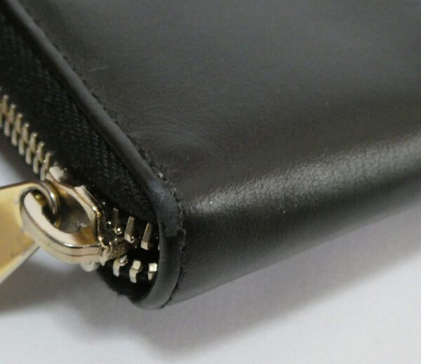 It is made from black calf nappa leather with gold coloured hardware