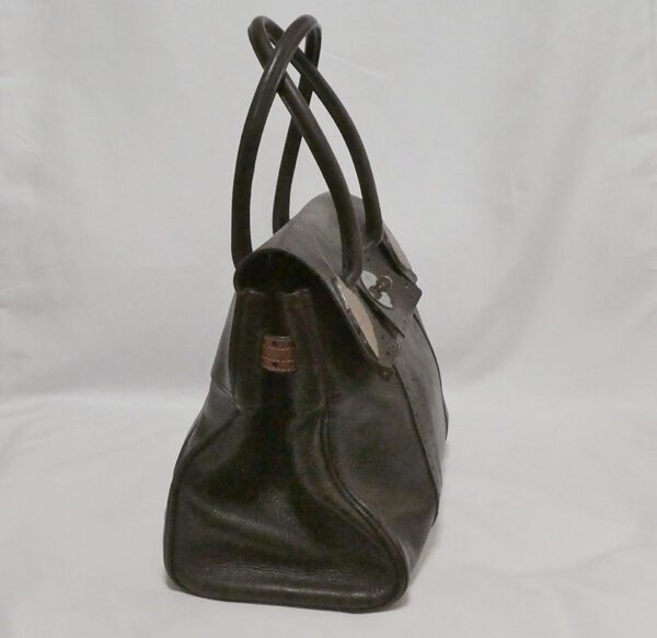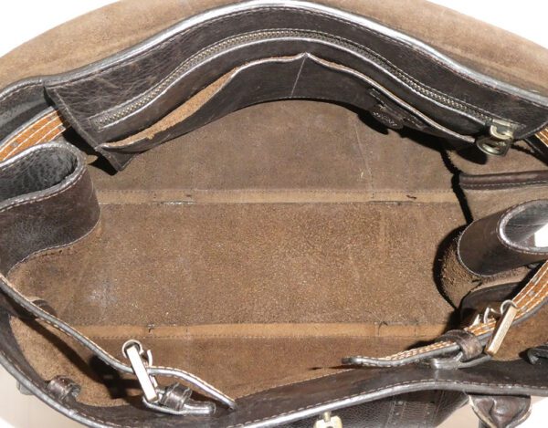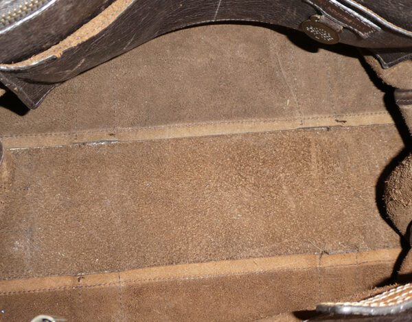 It has light wear to the corners and hardware, ageing to the rear handle inserts and inking (edge sealant), a few light marks to the leather typical to this leather type, and very light signs of wear inside which I have endeavoured to show in the photos