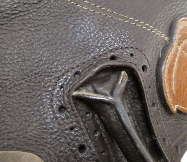 It is made from chocolate and oak darwin leather with antiqued brass hardware