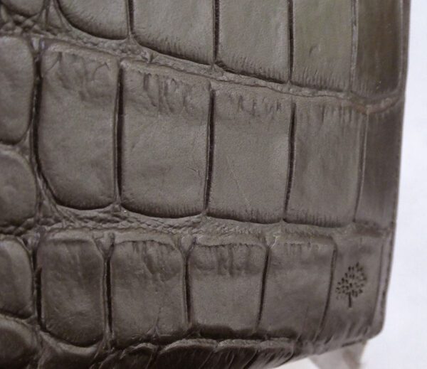 Mulberry’s printed leather is vegetable tanned which brings out the natural characteristics of the leather, and is then patterned in this distinct print. It is designed to age naturally and become more characteristic with use