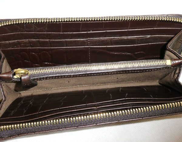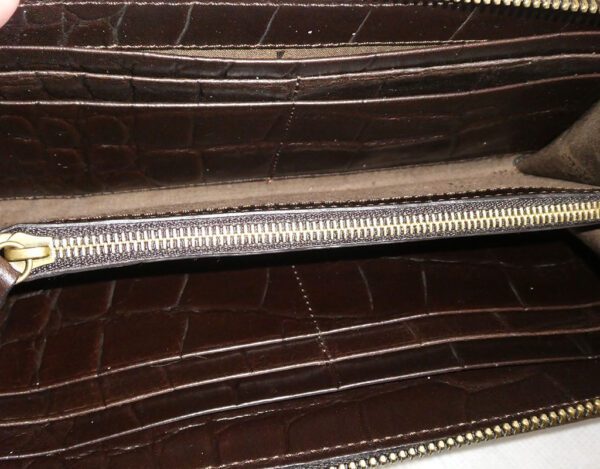 The purse is unused and still has the wrapping around the exterior zipper pull but does have a very slight mark on the front which is quite difficult to see, and which I have endeavoured to show in the photos