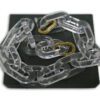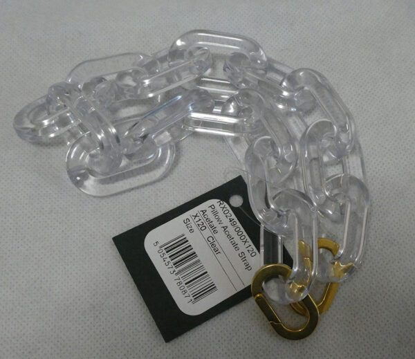 It is made from clear acetate with gold coloured hardware
