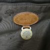 Mulberry leather label with round disc and serial number
