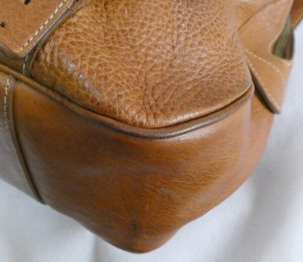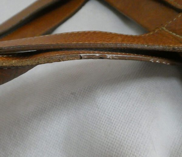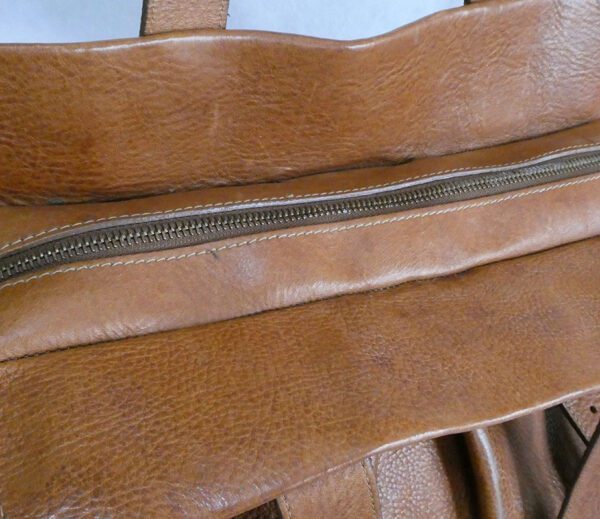 It has light wear to the corners and handles. some missing/peeling inking (edge sealant), a few general light marks to the leather, and the top zip sometimes catches on the interior lining that is fraying at the upper edge, and which I have endeavoured to show in the photos