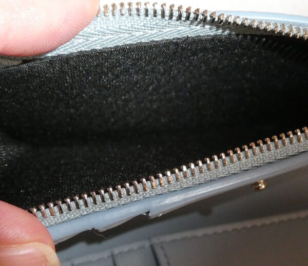 Zipped coin pocket with grosgrain fabric lining