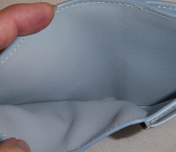 Inside has matching poplin blue leather lining