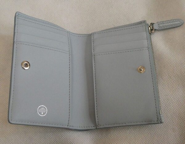 Mulberry poplin blue classic grain leather continental zip biflod wallet purse with box & receipt
