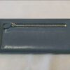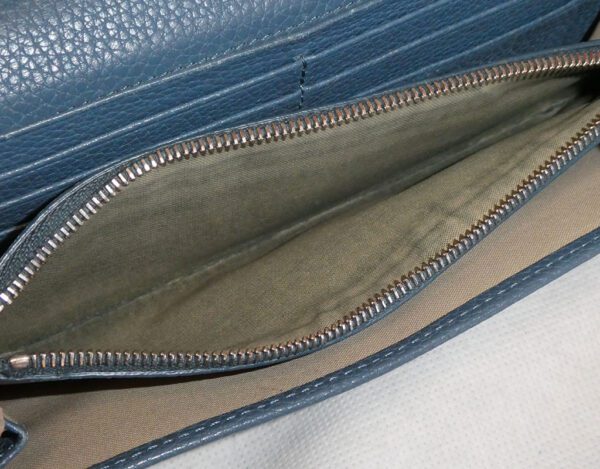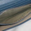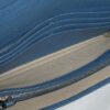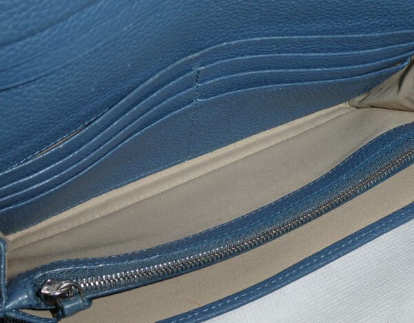 It is made from slate blue small classic grain leather with silver coloured hardware