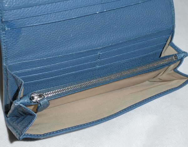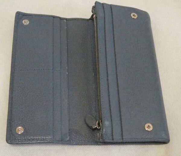It has light wear to the front plaque, corners, interior zipped coin section and a few slight rubs to the leather inside where the flap rests, which I have endeavoured to show in the photos