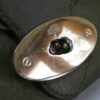 Mulberry leather label with round disc and serial number